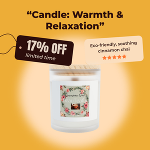 Frosted Glass Candle "BeauTEAful" - Cinnamon Chai Aromatic, clean, claming glow candle. Eco friendly. Made in USA.