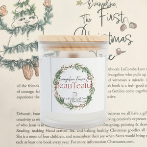 BeauTeaful 11oz Frosted Glass Candle - "Evangeline, The First Christmas Tree." Fresh Frazer Fir non- toxic