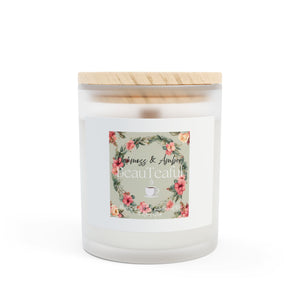 Scented Frosted Glass Candle "BeauTEAful" - Oakmoss & Amber =Calmness & Ambience, 11oz. Made in USA